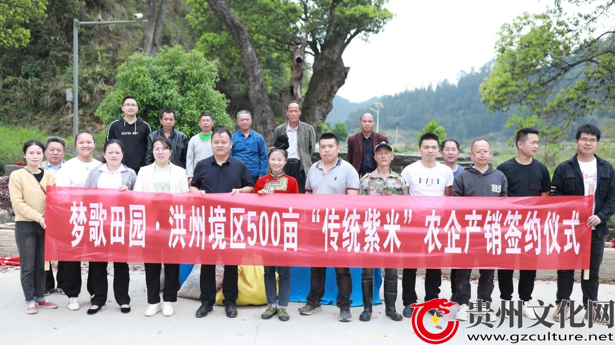 在中罗村签约现场,黎平县香连农产品贸易有限公司与中罗村、九龙村、豆洞村村民签订了500亩紫米、绿壳米、香禾糯、黑芝麻“农产品代种植”生产销售合作协议,公司免费向农户发放谷种,农户种植收割后公司将以保底合同价全部回收稻谷。