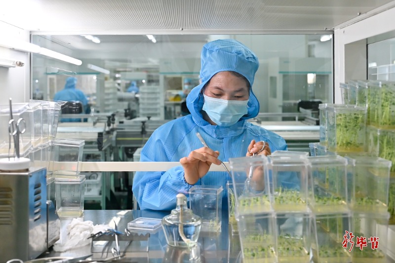 组培育苗是一项技术难度极高的工作,技术人员要在显微镜下裁剪长度仅0.1毫米的茎尖,一株茎尖可以复制出1亿株用来生产原原种。而产生分离组培苗的种子,则是科研人员从几十万粒种子中优选出来的“宠儿”。
