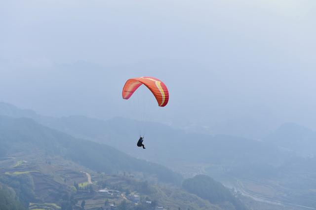 3月30日,位于安顺市的坝陵河大桥热闹非凡,滑翔伞特技表演人员穿戴齐全装备,从高300多米的桥上一跃而下,在空中撑开一朵朵鲜艳的“彩云”。时隔2日,在开阳县禾丰乡的上空,同样的“彩云”再次出现,2023第五届“翱翔贵州”滑翔伞比赛暨贵阳首届“飞阅十里画廊”全国滑翔伞公开赛在云中君滑翔伞基地举行,不仅有浙江、江苏、湖南、香港等地的50余名滑翔伞运动员参赛,多名全国滑翔伞冠军选手及世界纪录保持者陈洋的身影也出现在参赛队伍中。没有平原的贵州拥有最多的世界级桥梁,也在“低空”做出了精彩的文章。