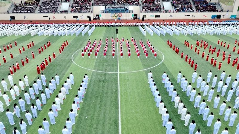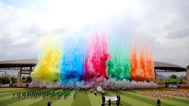 在文体方阵展演中,修文县第一小学、贵阳中科工程技工学校、贵州中医药大学时珍学院、修文第三小学分别进行武术、太极、创意队形以及领唱《歌唱祖国》大合唱表演。运动会以足球赛拉开各项目比赛的帷幕。