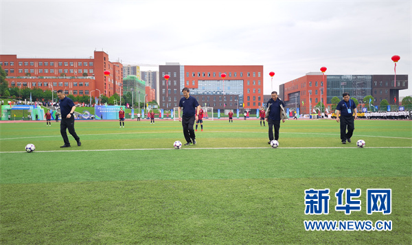 6月11日,出席仪式的领导嘉宾为2023年贵州省大学生女子足球比赛开球。新华网 卢志佳 摄