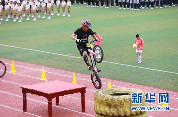 6月11日,启动仪式上举行的山地自行车表演。新华网 卢志佳 摄