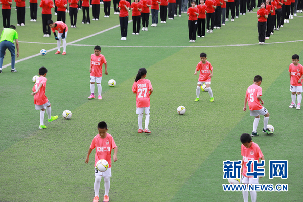 6月11日,启动仪式上举行的足球技巧展示。新华网 卢志佳 摄