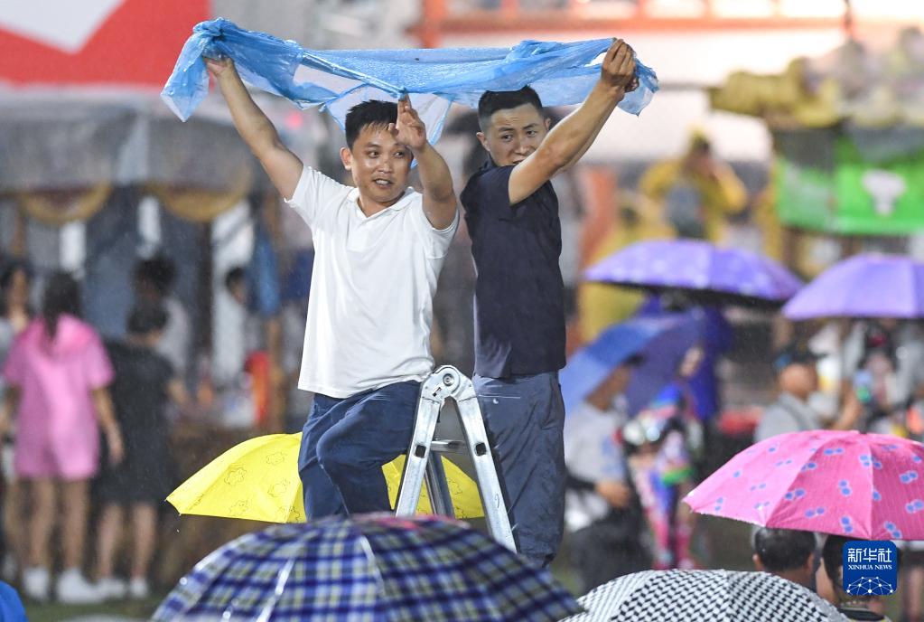 6月23日,观众冒雨观看球赛。新华社记者 杨文斌 摄