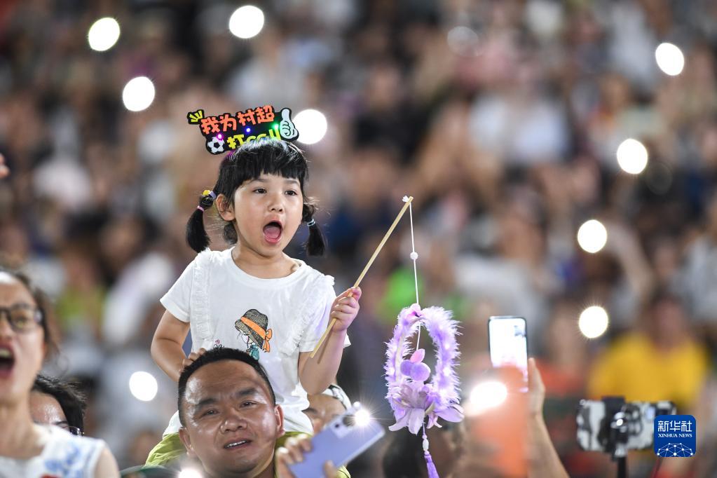 6月23日,一名小朋友在场边观赛。新华社记者 杨文斌 摄