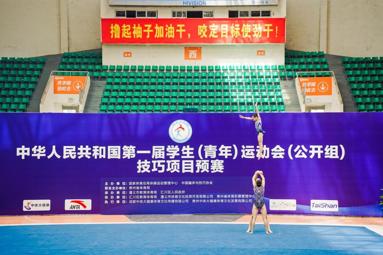 火热7月,展魅力放异彩!7月15日-16日,由国家体育总局体操运动管理中心、中国蹦床与技巧协会主办,贵州省体育局联合主办,遵义市教育体育局、汇川区人民政府承办,汇川区教育体育局、遵义市体育文化投资开发有限公司协办,成都中体大健康体育文化传播有限公司、贵州中体大健康体育文化传播有限公司执行的第一届全国学生(青年)运动会(公开组)技巧项目预赛在贵州省遵义市汇川区体育馆成功举办!