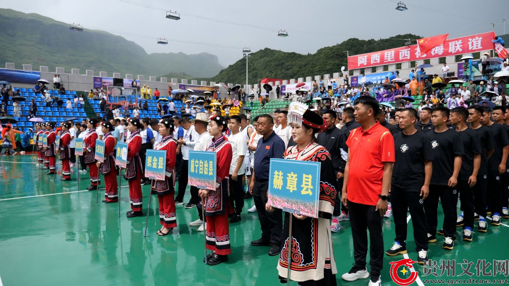 开幕式上,裁判员、运动员代表宣誓。身着盛装的当地少数民族,踏着动感的音乐、欢快的节拍,婀娜多姿地缓缓走来,用彝家人、苗家人和回民的热情大方和独特魅力喜迎八方来客,现场表演了《彝族原生态舞蹈铃铛舞》《欢迎你到赫章来》《带我到山顶》等文艺节目,为观众献上一场丰盛的文艺“大餐”。