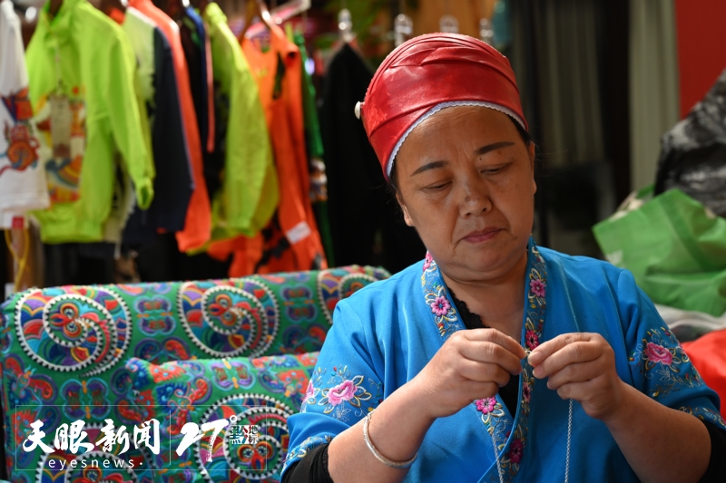 受此启发,杨春林以自己的苗族名字“古阿新”作为创业品牌,在西安开设了第一家实体店,从事民族文化设计相关工作。杨春林希望能结合苗绣非遗技艺和国潮文化,把贵州少数民族文化推广到更大的市场、更远的地方。