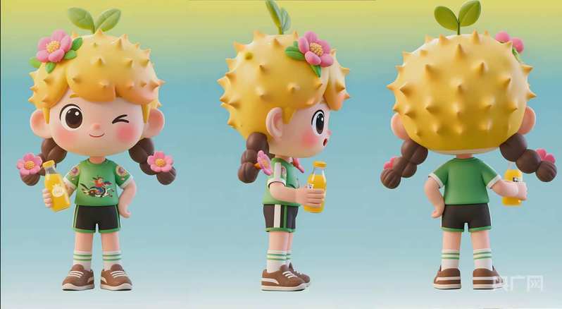 赛事吉祥物“刺小妮”设计灵感源自喀斯特地貌中顽强生长的刺梨,体现了六盘水人民不畏艰难、坚持不懈的奋斗精神。其将自然元素、地方文化与科技力量融为一体,在服饰纹样和色彩运用上融入了水城农民画元素,服装纹饰吸收了苗族、彝族的传统民间艺术符号,并通过农民画的夸张变形手法进行提炼,整体造型既具有写意性又富有装饰性,生动展现了水城农民画质朴、奔放的乡土气息。
