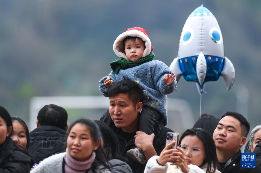 1月1日,一名小朋友与家人在贵州省三都水族自治县观看“村马”比赛。新华社记者 杨文斌 摄