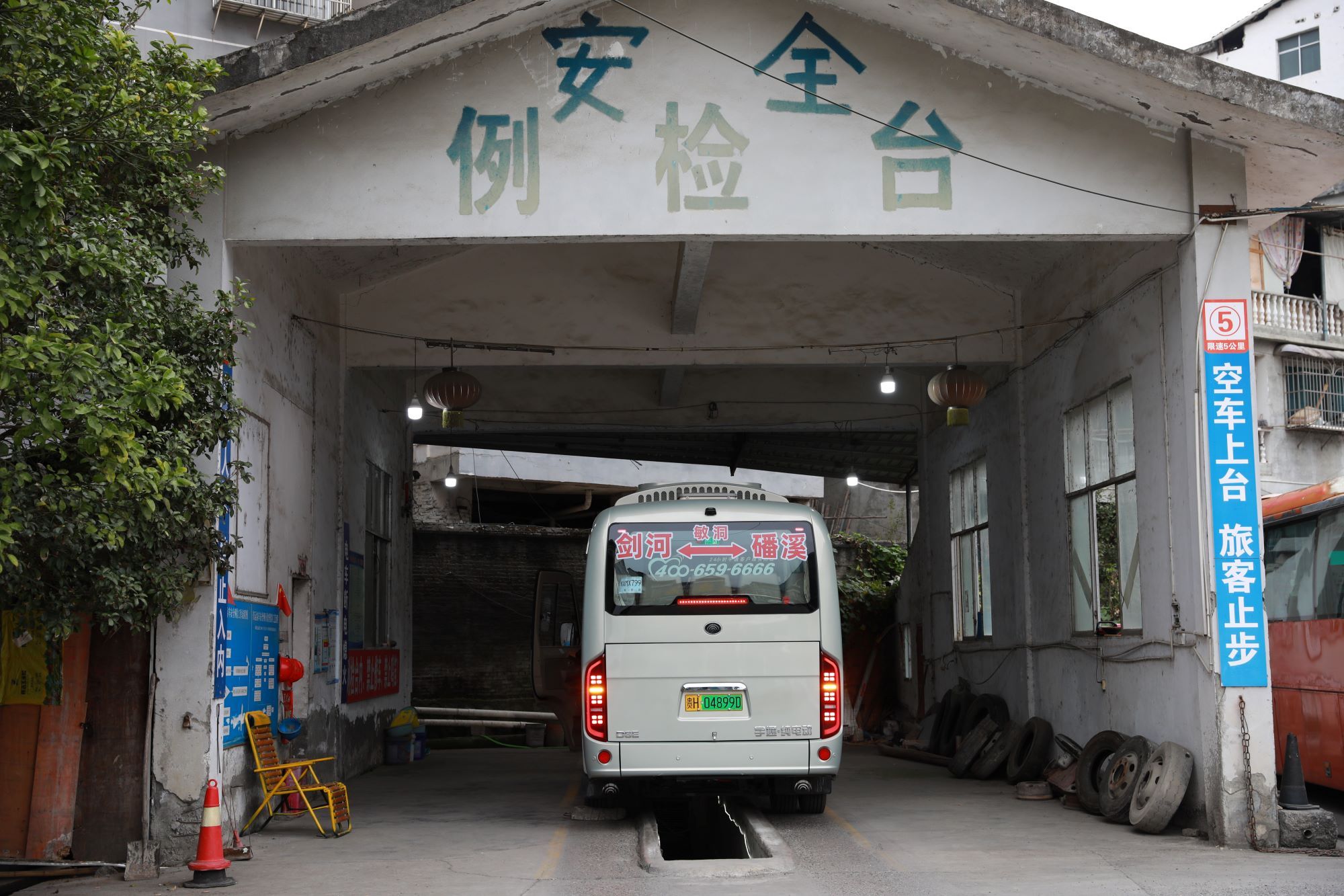 进行安全检查的客车(剑河县融媒体中心供图)