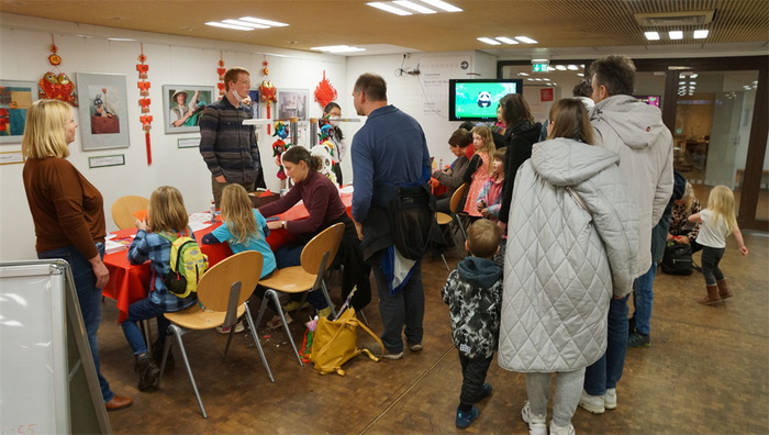 木偶戏剧节期间,柏林中国文化中心还在少年宫设置了中国文化展台,以深受孩子喜爱的大熊猫为主题,开展剪纸、涂鸦、熊猫知识竞猜等体验活动。展台旁的观众络绎不绝,孩子们兴致盎然地参与活动,纷纷带着自己的手工作品和中心赠送的大熊猫钥匙链、胸章、冰箱贴等小礼物乘兴而归。