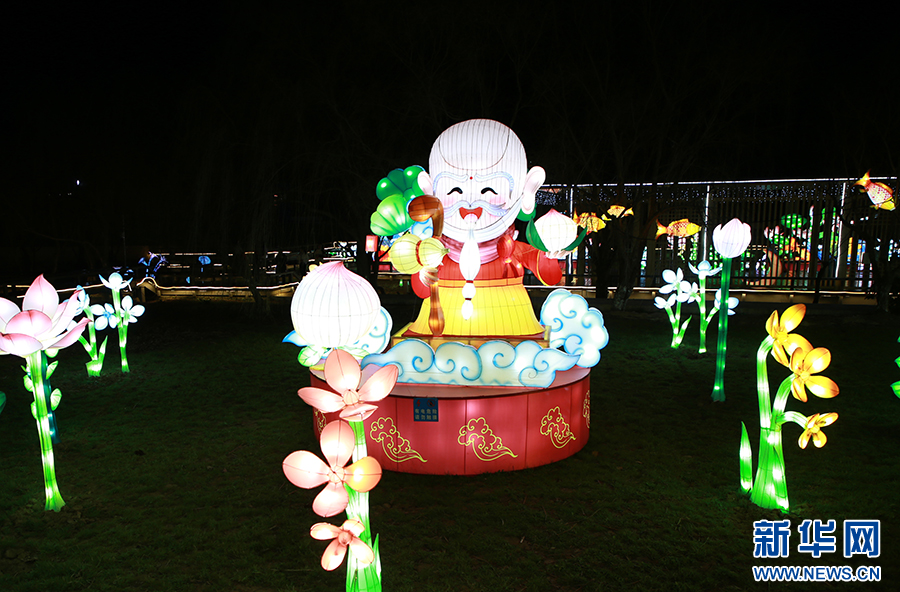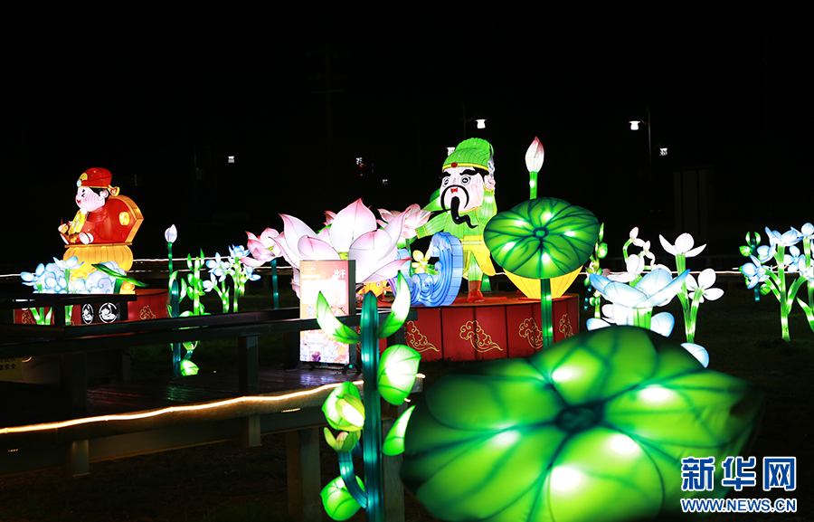 2024贵阳·白云蓬莱仙界“蘑力全开”新春花灯游园会流光溢彩的灯组。新华网 刘昌馀 摄