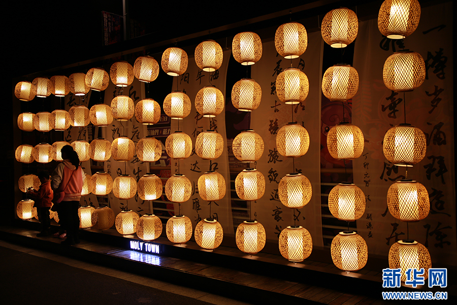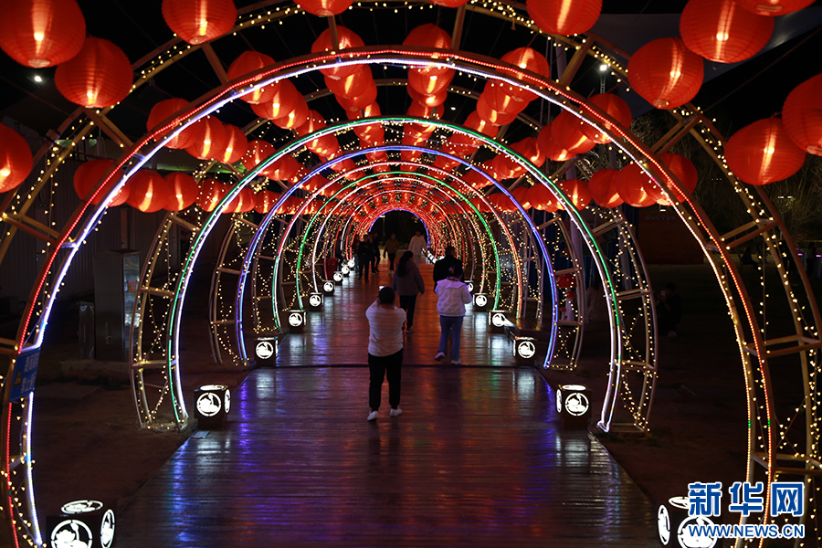 2月19日,游客在2024贵阳·白云蓬莱仙界“蘑力全开”新春花灯游园会游玩。新华网 刘昌馀 摄