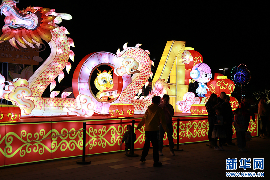 2月19日,在2024贵阳·白云蓬莱仙界“蘑力全开”新春花灯游园会上举行舞龙巡游民俗活动。新华网 刘昌馀 摄