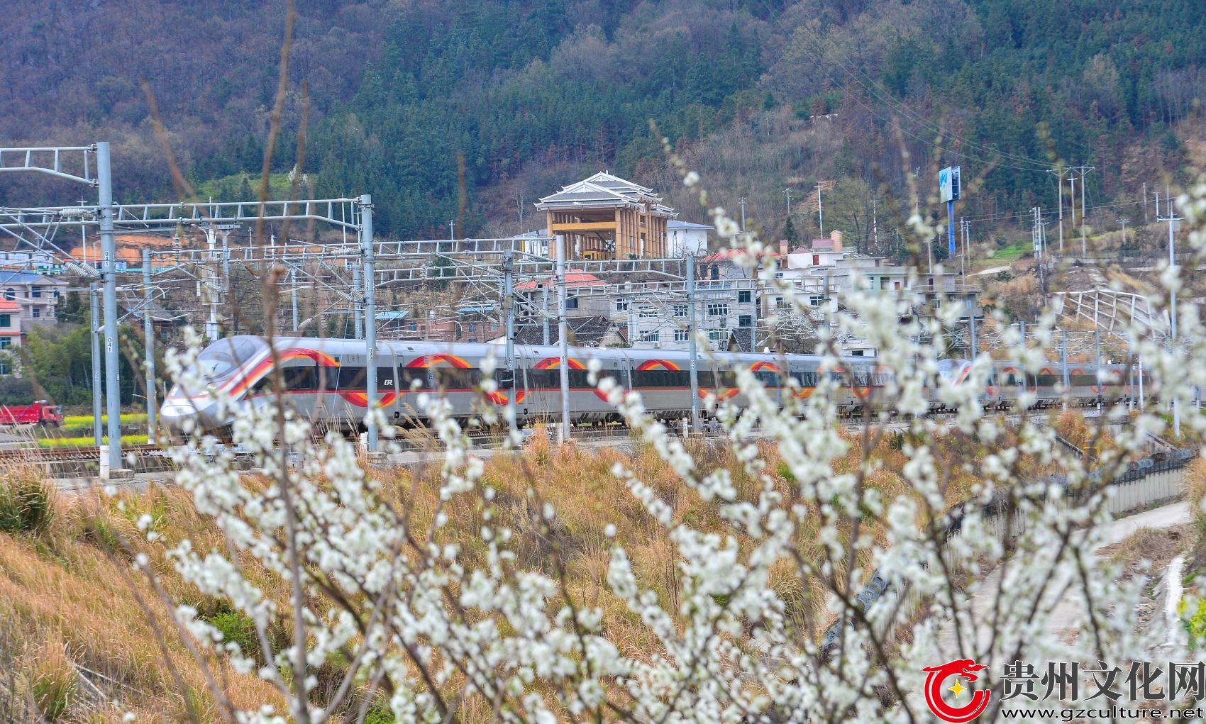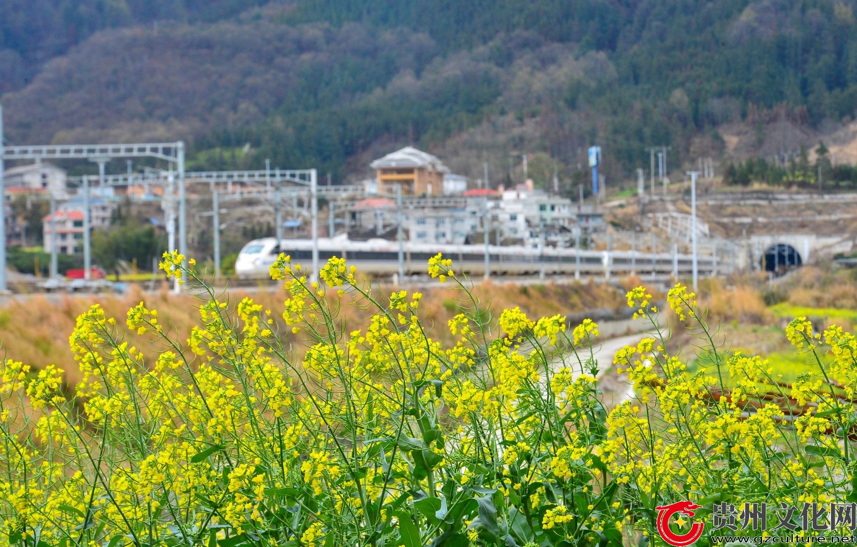 近日,贵州省黔东南苗族侗族自治州从江县境内的油菜花、李花等陆续开放,动车组列车穿行其间,美不胜收。(卢忠南)
