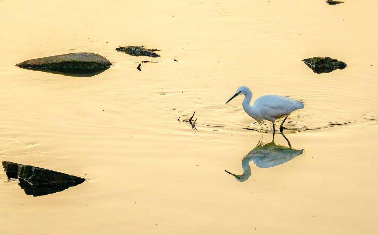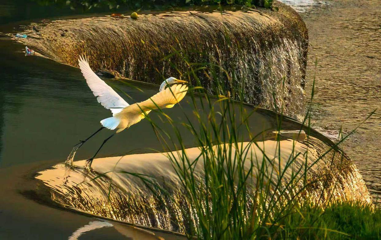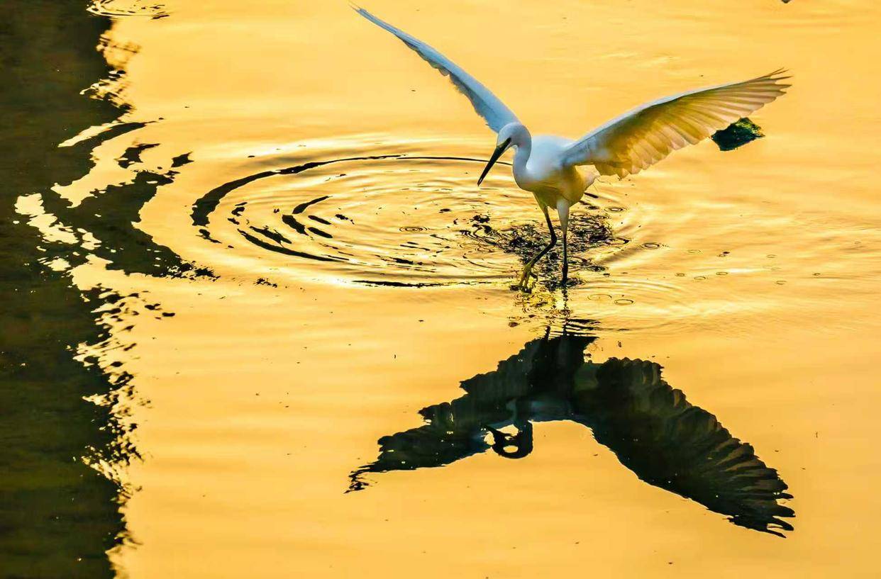 贵州省黔西南布依族苗族自治州望谟县县城,冬日清晨的王母河,初升的暖阳为河面镀上一层流动的金箔,粼粼波光随涟漪荡漾。一对白鹭翩然现身金辉之中,在晨空中划出优美弧线,轻盈的身姿在金河之上辗转腾挪,每一个动作都裹挟着阳光的暖意,定格成一幅灵动鲜活的冬日晨曲。望谟县作为国家级北盘江湿地公园重点区域,也是珠江水系主要的生态屏障保护地。每年各类野生鸟类都要飞到望谟县越冬。张帆 摄